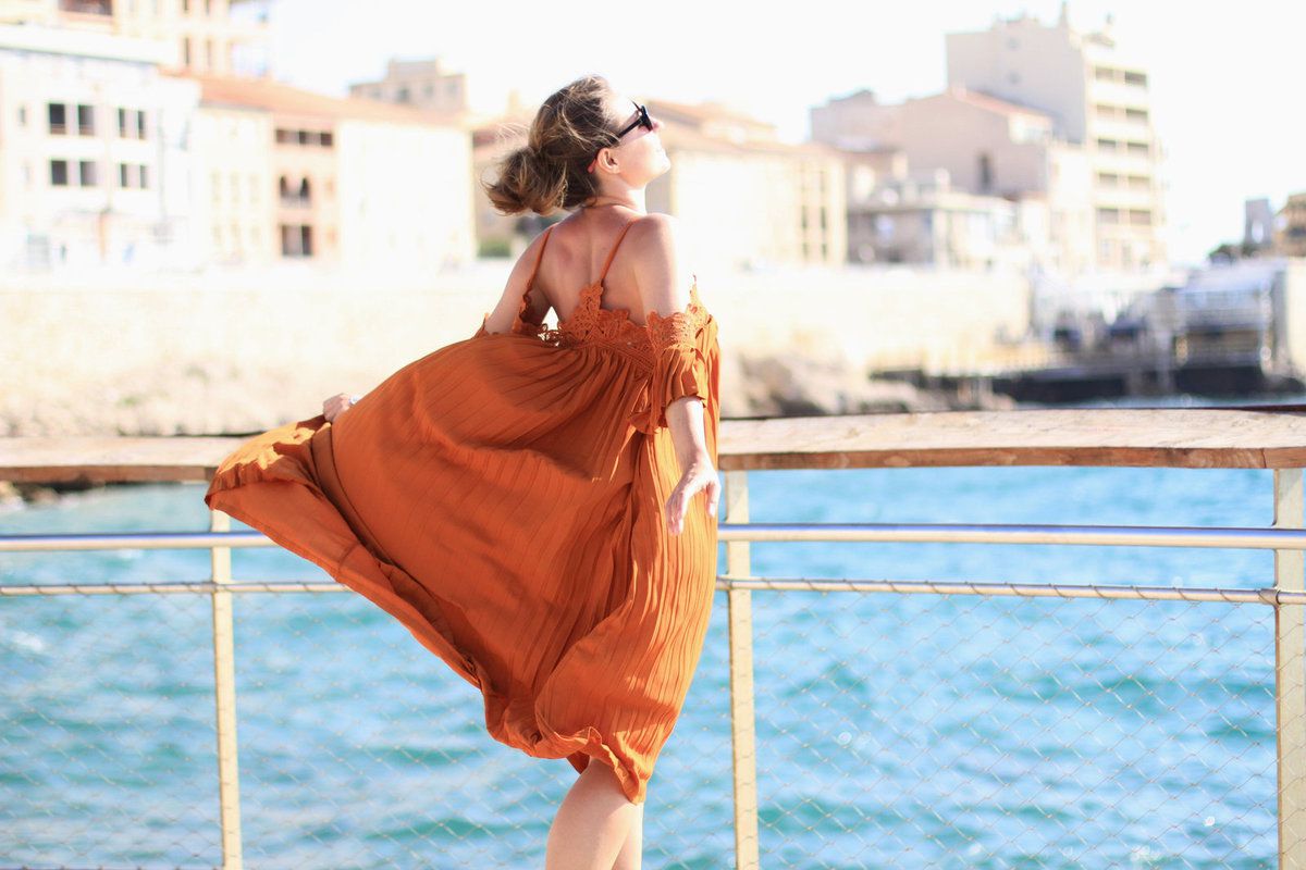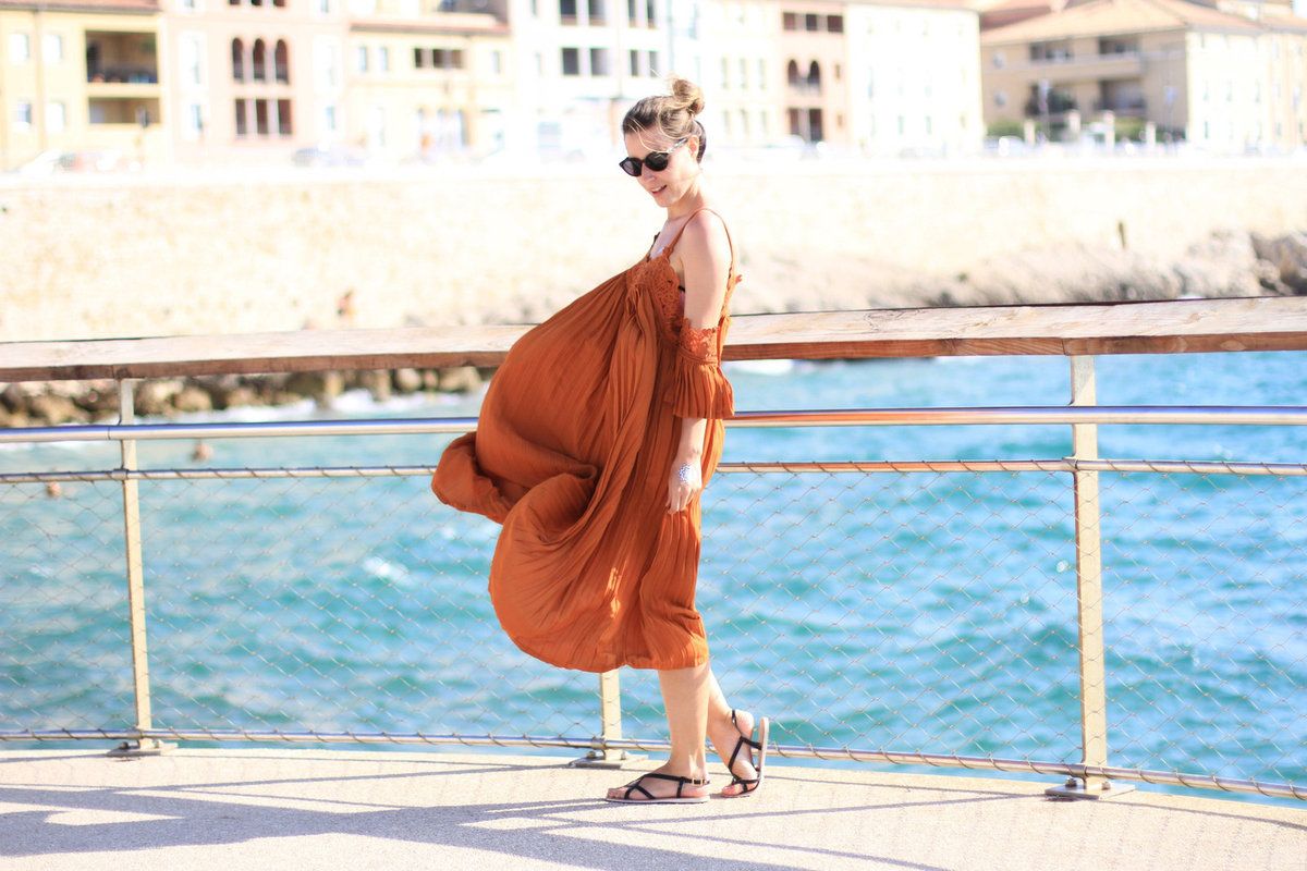 Petit shooting improvisé donc au bord de la mer sous le soleil tapant de Marseille. Le vent qui normalement est un calvaire pour la blogueuse que je suis est devenu au final un véritable atout, mettant en valeur le volume dingue de cette robe.